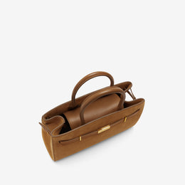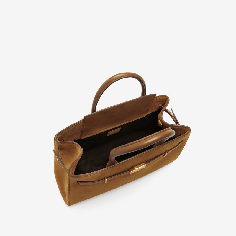 The Midi Hudson is a compact version of our bestselling style designed to empower, crafted to last. Featuring our signature belted strap and gold-plated lock, it's handmade with luxurious artisanal details. Sleek, with plenty of space for essentials, it's an elevated choice for moments on the go. The central leather flap with a magnetic closure keeps belongings secure, while a rear slip pocket provides quick access to essentials. With expandable side panels for extra space when needed, it offers versatility in every moment whether worn handheld, on the crook of the arm, or crossbody with its adjustable strap. Ethically produced from sustainably sourced, LWG gold-rated Italian leather, The Midi Hudson blends timeless style with contemporary refinement.