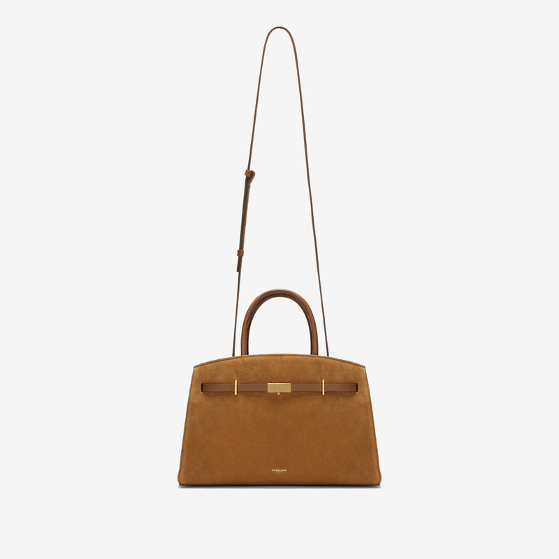 Elsa Hosk reimagines The Midi Hudson in an exclusive Brulee Suede.