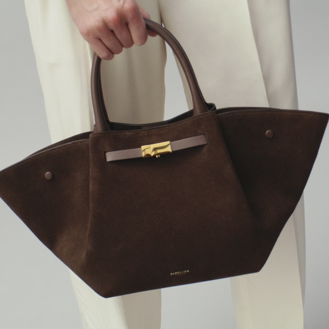 The Midi New York was inspired by our love for this amazing city, its energy, architecture and people. Its modern yet timeless silhouette and subtle luxury finish makes it the perfect day bag. The interior can be safely closed off with a central internal magnet. The comfortable tubular handles sit nicely in the crook of your elbow or can be held by hand. The base is constructed with triangular folds on each side and enhanced with metal feet. This bag is the perfect size to carry all essentials.
