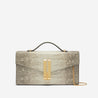 The Vancouver Clutch is handcrafted from sustainable materials and boasts our signature gold-plated double-bar lock that sits front and centre. This elongated, oblong shaped clutch has a retractable top handle and an intricate gold-plated chain shoulder strap. The Vancouver Clutch can be carried 3 ways - by top handle, over the shoulder or tucked under your arm. The interior is lined with cotton canvas and has ample space for evening essentials.
